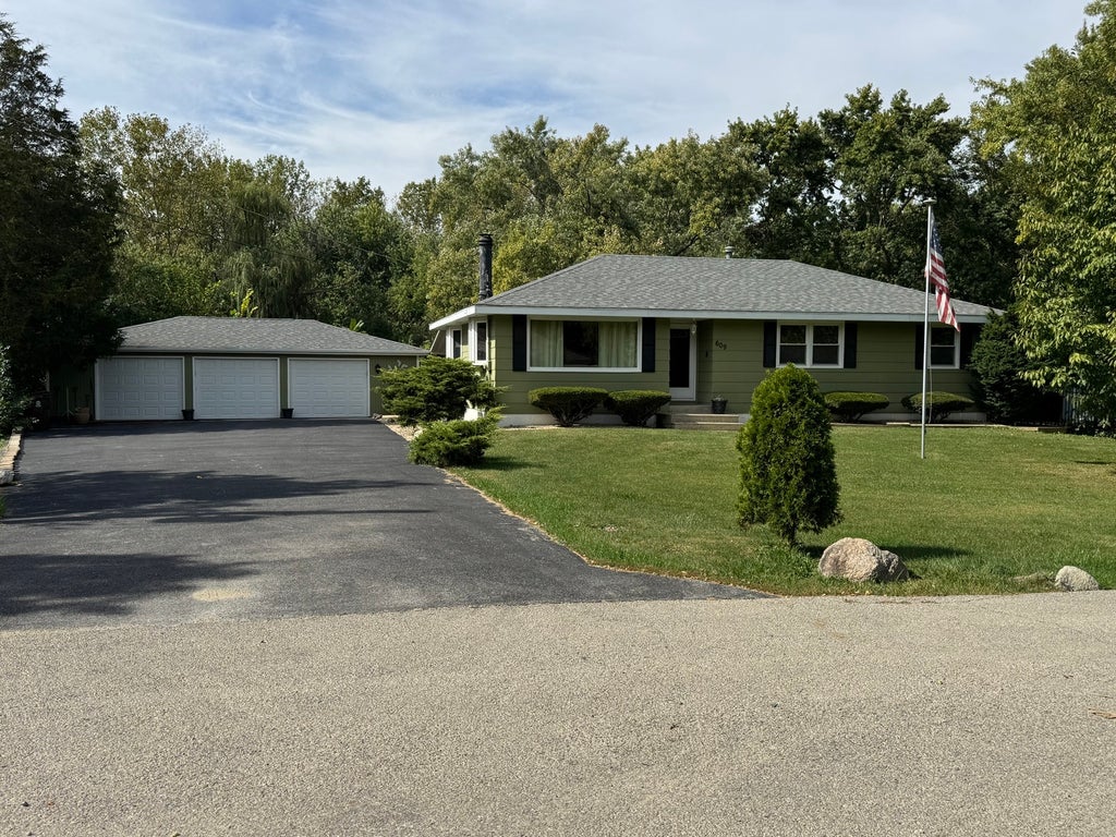 Discover the perfect blend of rural serenity and city convenience in this inviting 1,200 sq ft ranch home, nestled on a spacious 1.10-acre fenced lot on dead end street (low traffic). With a full basement and an oversized three-car garage (complete with a fourth door for seamless yard access), this property offers endless possibilities for comfortable living and hobby space. Step inside to a beautifully updated kitchen that's the heart of the home-featuring gleaming stainless-steel appliances, plenty of counterspace, tile backsplash, and a dinette table area for family meals. The main level flows effortlessly with two generous bedrooms, a versatile office/bedroom with its own private half bath, and a full bath for everyday ease. Descend to the expansive basement, where a large second family room awaits, anchored by a brick gas/wood-burning fireplace-ideal for movie nights or gatherings. Additional flex space includes another office/bedroom, a dedicated laundry room, and ample storage to keep life organized. Recent updates ensure peace of mind: A/C (2025), four insulated garage doors (2022), fresh asphalt driveway (2023), Roof (2015). The heated, insulated garage boasts a 220V electric heater, cast-iron wood-burning stove, and TV-perfect for workshops or watching the game. Unwind with morning coffee on the covered patio or the expansive wood deck, gazing over the lush, private backyard. Embrace that countryside vibe while being moments from shopping, schools, commuter trains, and major highways.