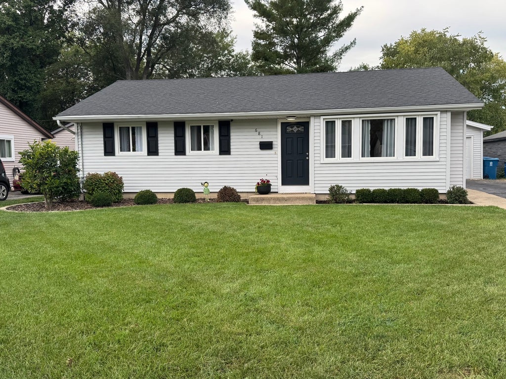 Polished Ranch Style starter home, offering comfort and modern touches throughout. Step inside to find a beautiful Kitchen including Dishwasher 2024, Range & Refrigerator 2021, and Microwave 2019. The bathroom has been thoughtfully updated, featuring a fresh design! Updated light fixtures and ceiling fans throughout. With it's easy one-level layout, inviting living spaces, and move-in-ready condition, this home is an excellent choice for first-time buyers or anyone looking to downsize. Vinyl thermal pane windows. Large deck in the fully fenced yard, and a quiet established neighborhood. Roof 2017-Furnace-Central Air-Water heater 2016. Great workspace in the garage with additional cabinetry.