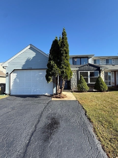 Don't miss this beautifully updated and rarely available 4 bed, 1.1 bath end unit duplex - with no monthly association! Open concept main level with a fully renovated kitchen with new cabinetry, quartz counters, ss appliances, custom tiled backsplash and new LVP flooring that extends throughout the main level. Sliders off the kitchen lead to a large fully fenced yard with private patio that's perfect for family gatherings, pets or outdoor entertaining. Spacious living room with custom feature wall and separate dining area. Upstairs are 3 sizeable bedrooms including a spacious primary bedroom with a stunning feature wall and dual closets, a renovated full bath with walk-in shower and conveniently located 2nd level laundry. Attached garage and ample driveway parking. All new cabinets/vanities, appliances, flooring, lighting and paint throughout. Tucked into a quiet subdivision yet just minutes to shopping, dining, schools, parks - and a quick commute to I90 and the Metra. This move-in ready home offers style, function and value at an affordable price!